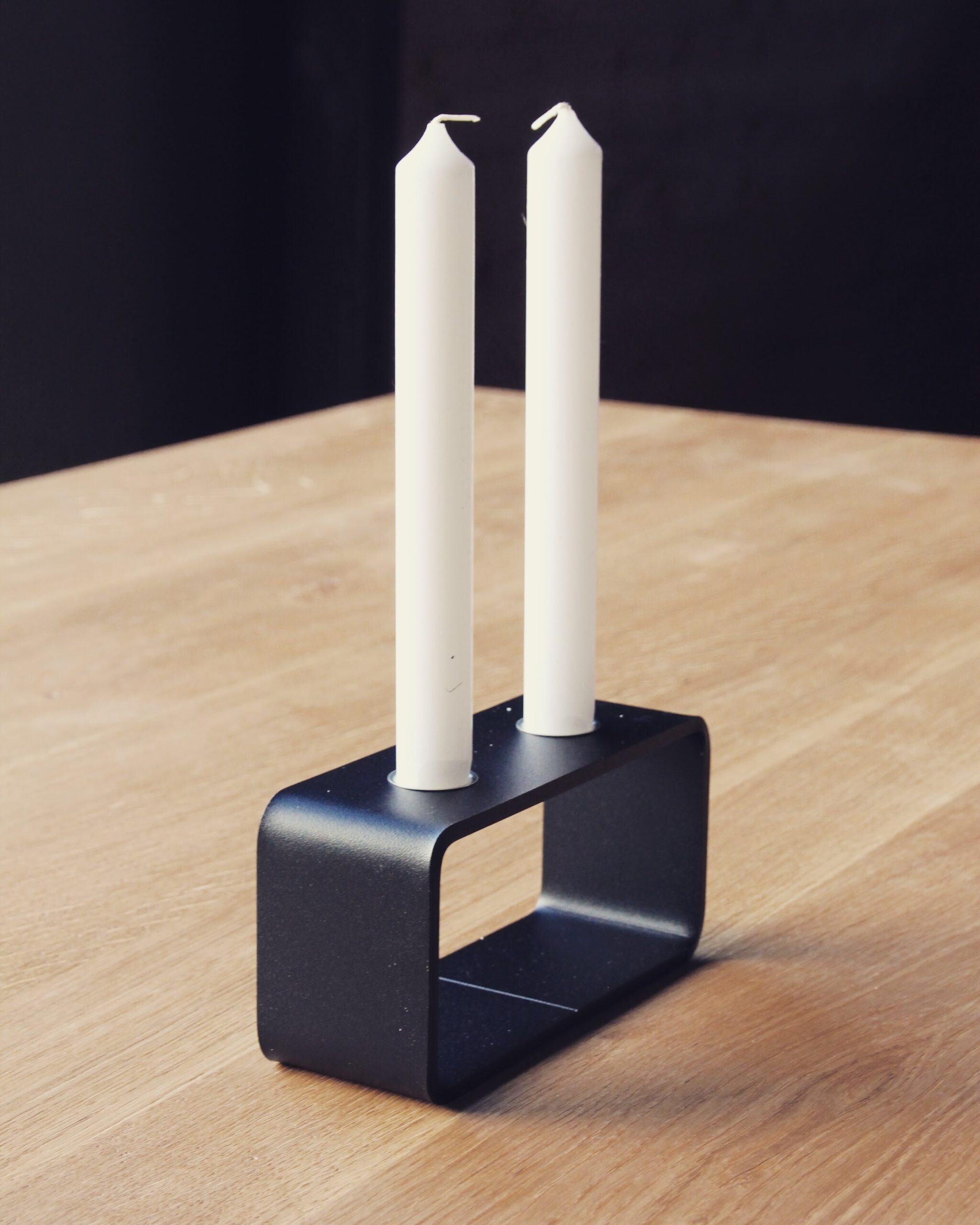 Kerzenständer TWOGLOW vereint ein modernes und schlichtes Design. Der moderne Kerzenständer für zwei lange Kerzen besteht aus massivem Stahl und wiegt 932 g – nicht wenig für einen Kerzenständer. Dafür rutscht er aber auch nicht versehentlich vom Tisch. Der harte Stahl ist pulverbeschichtet in der Farbe Schwarz oder Weiß. Du erhältst mit TWOGLOW einen super stylischen Kerzenständer made in Germany (Hamburg).