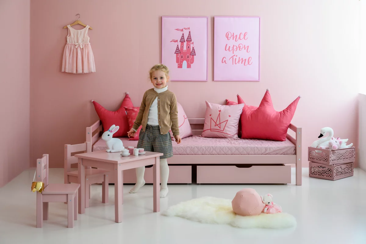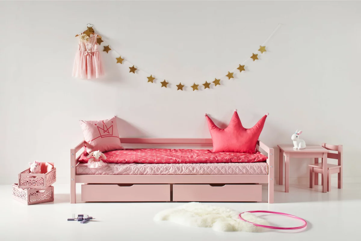 Das ECO DREAM Kinderbett von Hoppekids in der Größe 90×200 cm wird aus massiver nordischer Kiefer gefertigt und ist mit dem Nordischen Umweltzeichen ausgezeichnet. Das Kinderbett in 90×200 cm ist wahlweise mit Schubladen erhältlich, die mit Rollen ausgestattet sind und einfach unter das Bett geschoben werden können. Mit Stofftieren, schönen Bildern, einer Matratze, Kissen und mehr kann das Bett zusätzlich dekoriert werden. Ein Lattenrost ist bereits in der Lieferung inklusive. Eine Matratze ist nicht inklusive. Dekorationen wie z.B. Kissen, Bettwäsche sind nicht Teil der Lieferung.