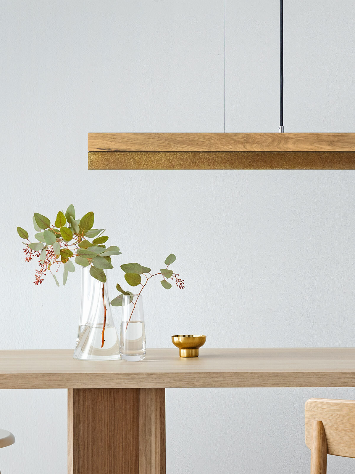Bis zu einer Tischlänge von 200cm empfehlen wir die C1 Leuchte mit 122cm Länge.