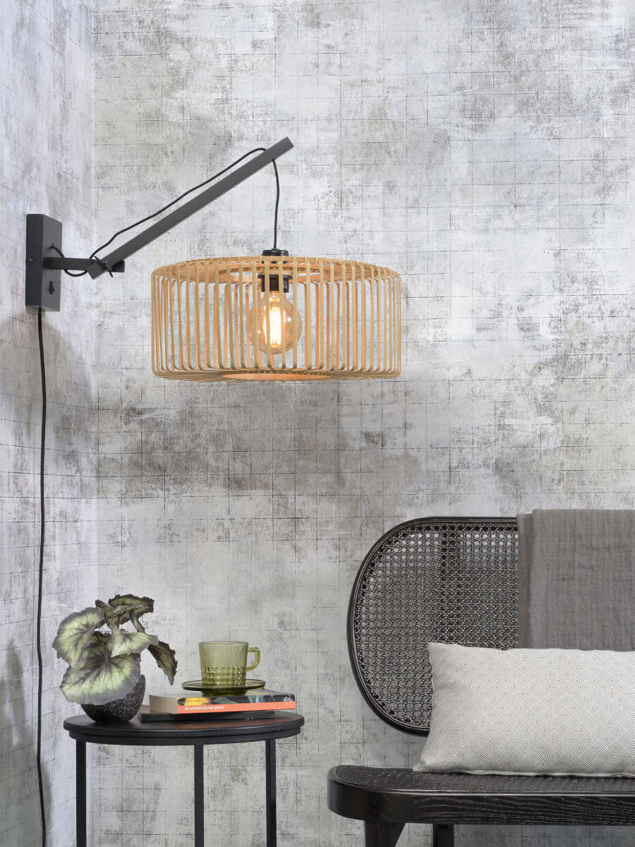 Die moderne Wandlampe BROMO aus Bambus ist ein echter Hingucker in jedem Zuhause. Die Leuchte wird mit einem 200cm langen schwarzen Textilkabel geliefert. Der Ein- und Ausschalter befindet sich an der Basis der Wandleuchte. Ein E27 Leuchtmittel (max. 40 Watt) wird benötigt. Dieses ist in der Lieferung nicht inklusive.