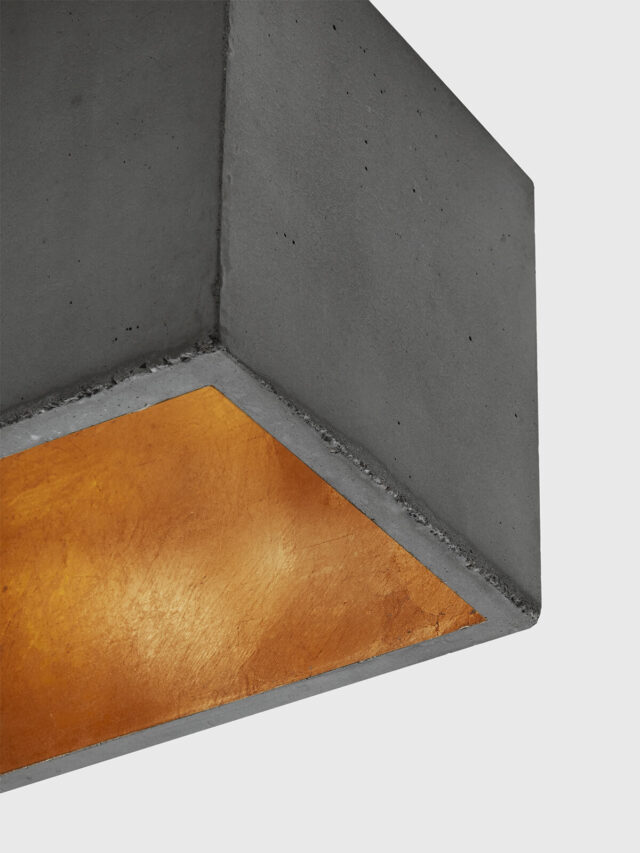 Du willst dir ein cooles Loft-Flair in die Wohnung holen? Mit der Lampe B4 des Labels GANTlights schaffst du das ganz einfach. Ein Mix aus hochwertigem Beton und einer Innenseitenveredelung mit Gold, Silber oder Kupfer lässt auch dein Zuhause im hippen Industrial-Stil erstrahlen. Vielleicht fragst du dich, ob Beton nicht viel zu schwer für deine Zimmerdecke ist. Hier kannst du gerne nachlesen wie das funktioniert mit dem Beton bzw. dem Gewicht. Mit den Maßen 56cm x 14 cm x 14cm eignet sich die Hängelampe also besonders gut als Blickfang über einem großen Esstisch oder einer Theke. Durch die veredelten Innenseiten strahlt die Leuchte ein sehr gemütliches Licht aus. Hängeleuchte B4 ist daher das beste Beispiel für eine gelungene Kombination von kühlem, harten Material mit warmen, sanften Licht.